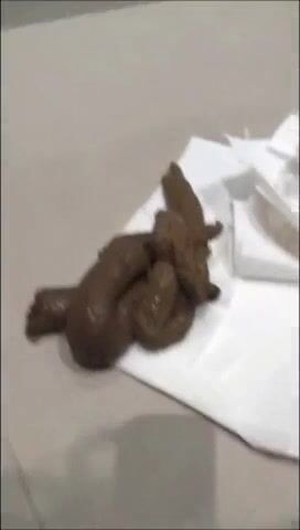Cute brunette gal dancing and pooping