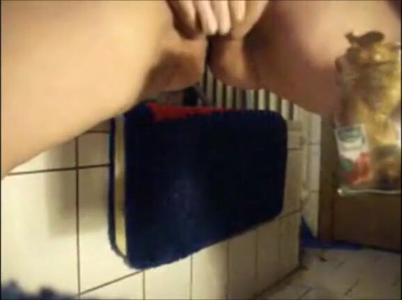 Big lady shitting in a jar