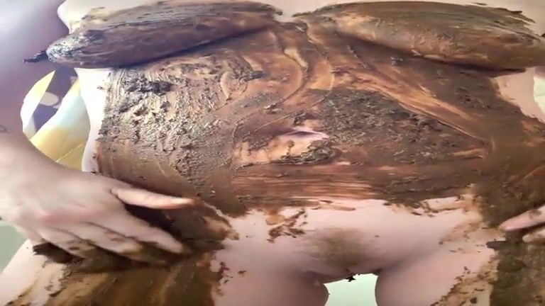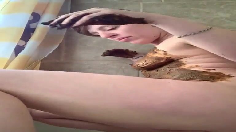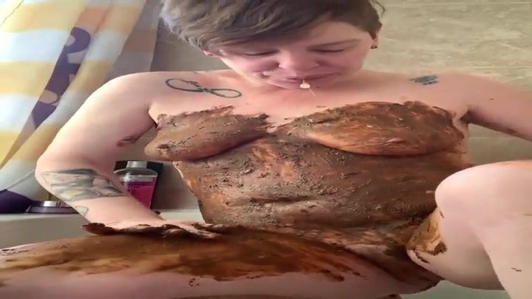 Mature horny slut smears shit all over her body