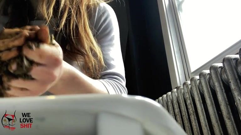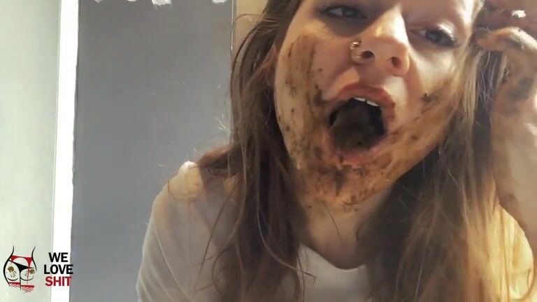 Cute skinny blonde girl smearing shit