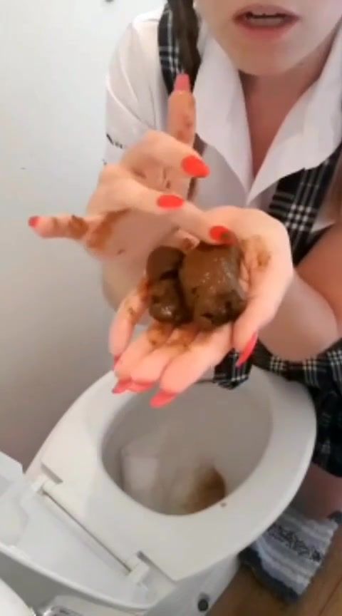 Schoolgirl eating shit from toilet