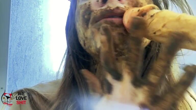 Delicious babe and sticky shit smearing solo