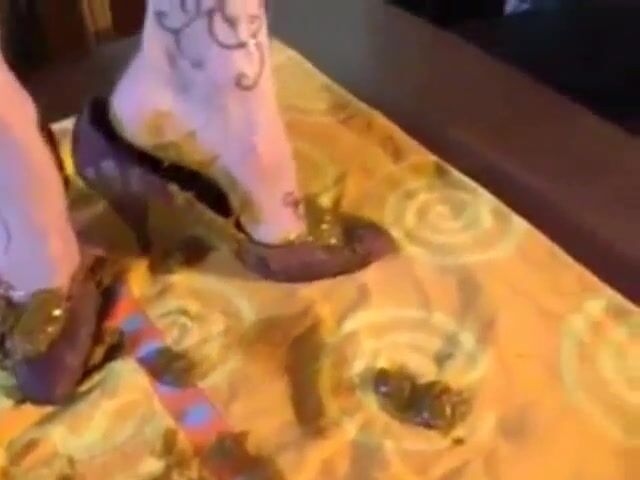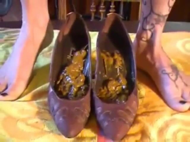 Dirty tattooed milf poops in her sandals