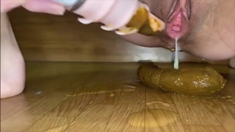 Big dildo and creamy poop