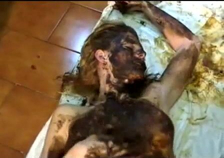 Blonde hot chick smearing shit on her body and face