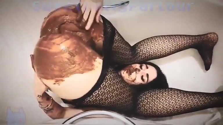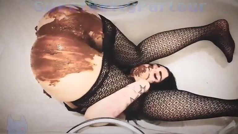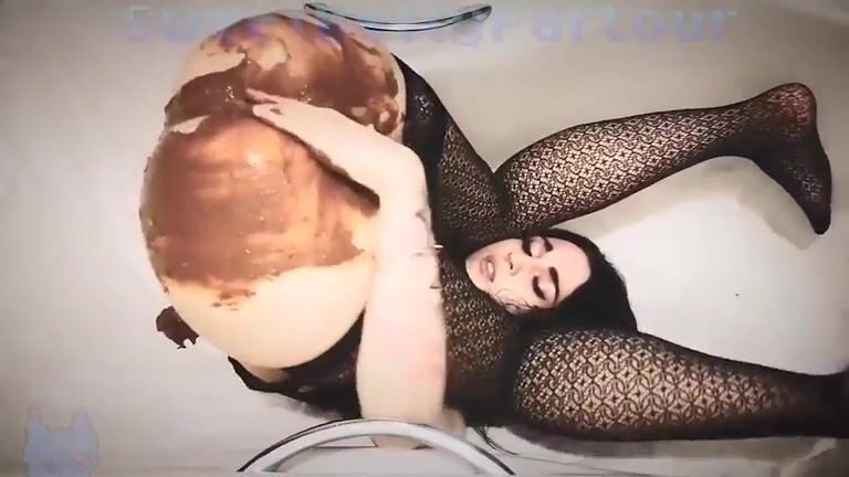 Asian sexy babe in fishnet pooping huge load