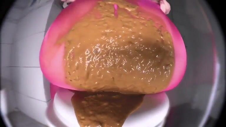 Nasty gal in pink pantyhose pooping heavily