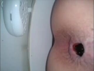 Shitting a dark turd in the toilet closeup