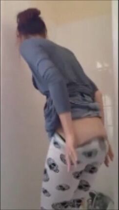 Girl shitting on the bathroom floor