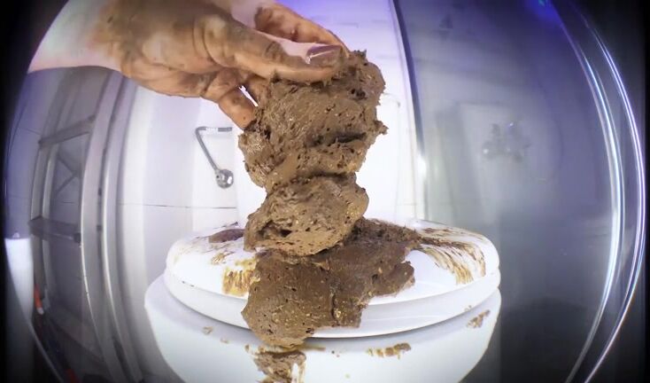 Girl shits in toilet and spreads it with her ass