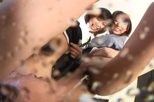 Beautiful hairy Japanese girls splashing piss POV