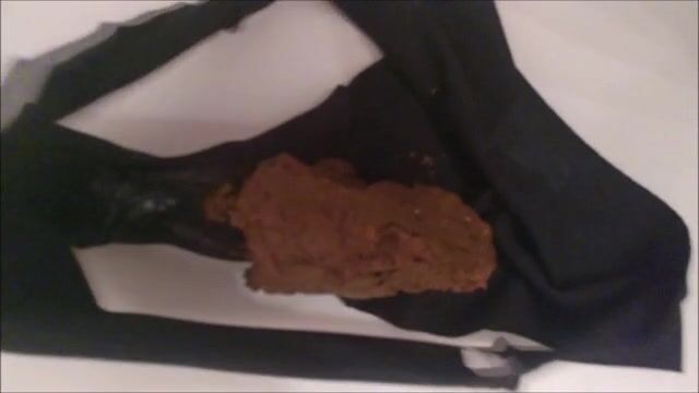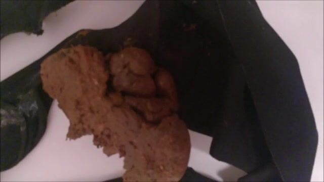 Girl in black panties shits