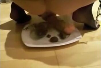 Girl masturbating asshole with dildo while shit eating