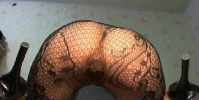 Seductive babe in pantyhose teasing and pooping