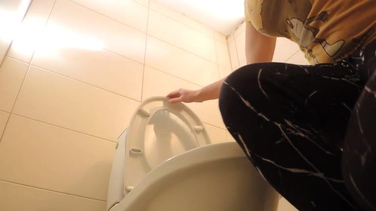 Amateur babe pooping in the toilet at night