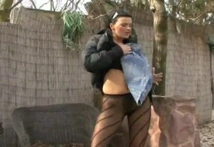 Nasty brunette babe teasing and pantyhose piss
