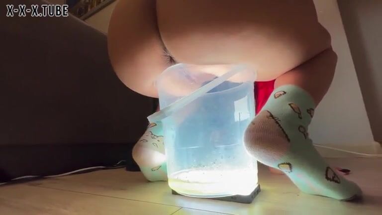 Gorgeous Asian babe piss in the jug