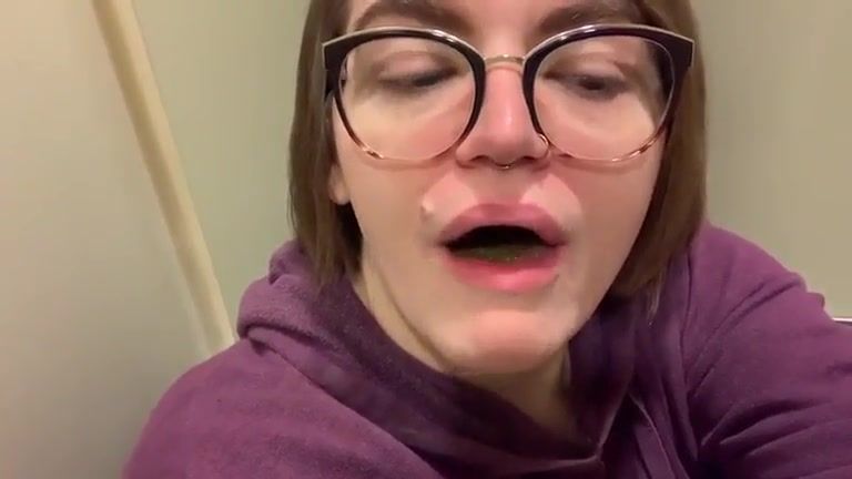 Amateur office girl in glasses playing with Anal Prolapse