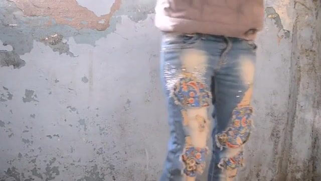 Cute girl pooping at a construction site
