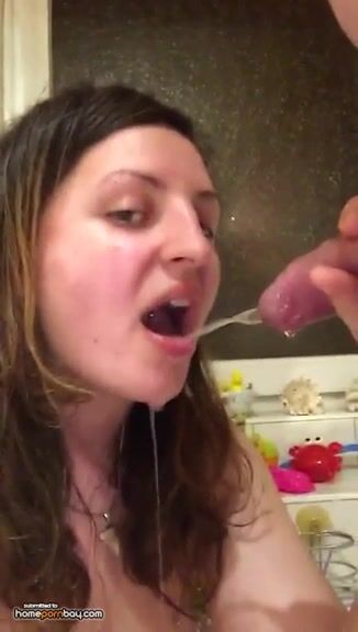 Sweet wife taking pee in her mouth