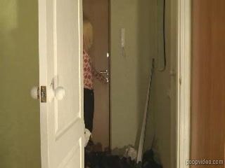 Messy shit on the floor from sexy blonde