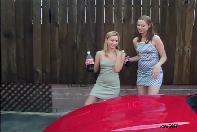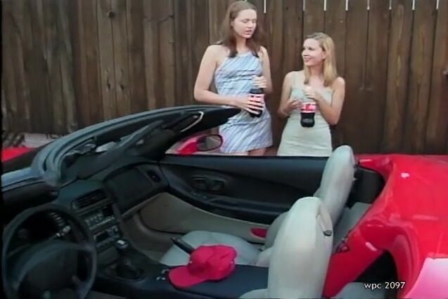 Two nasty girls pissing on corvette