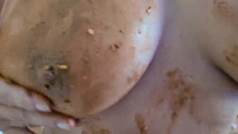 Massive tits lady smearing shit