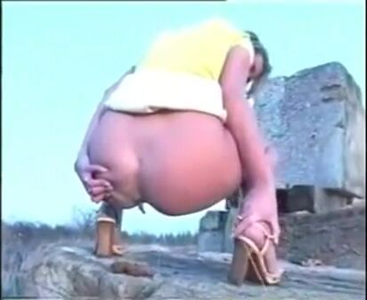 Beautiful Retro blonde girl pooping
