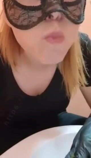 Amateur blonde scat girl licking and eating shit