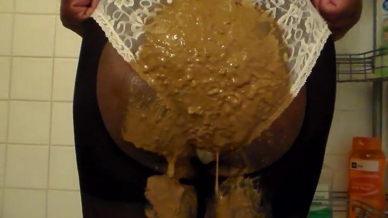 Very dark ebony and messy panty poop