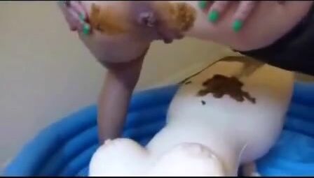 Wife with pumped up pussy shits on sex doll
