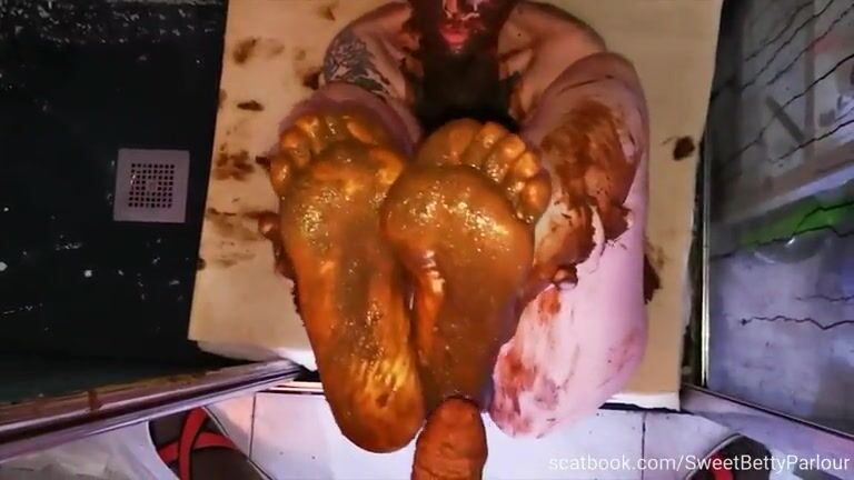 Tattooed gorgeous babe giving nice looking scat blowjob