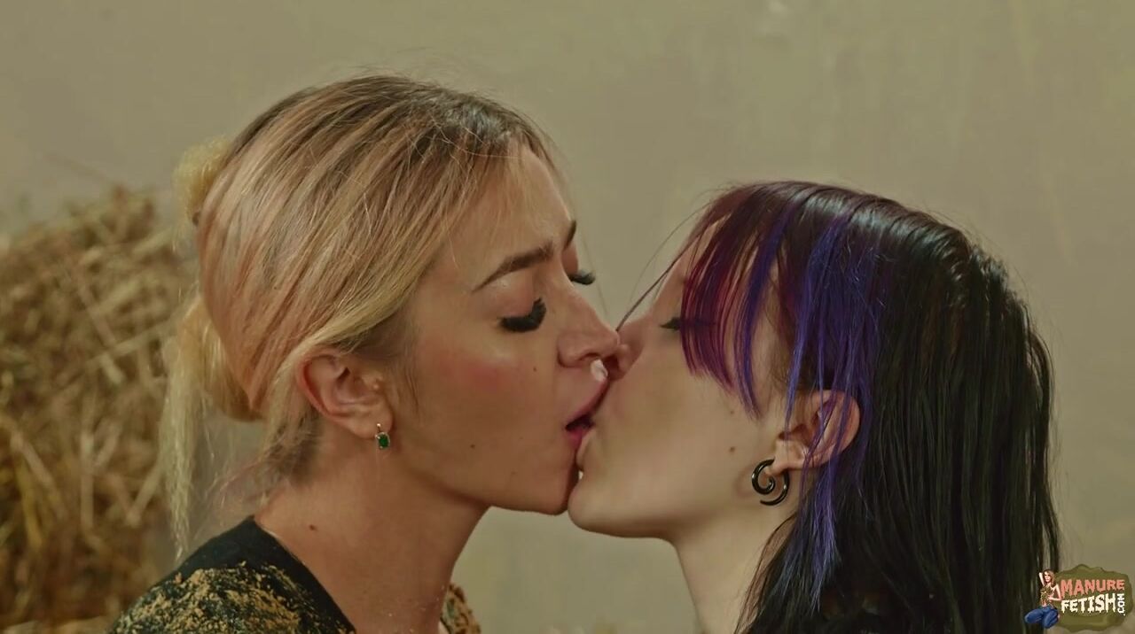 Girls plying in animal shit together