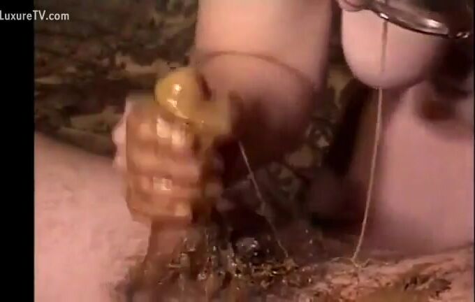 MILF covers a cock with shit in sex