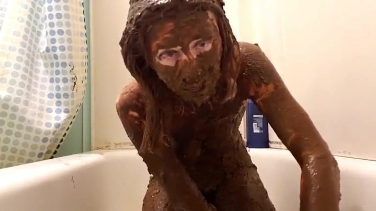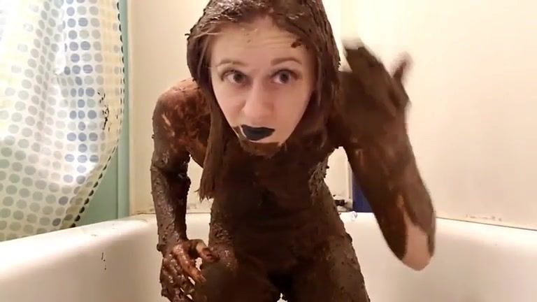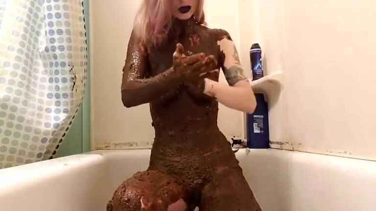 Goth girl smears her entire body with shit