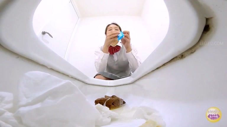 Cute young Japanese babe pooping in the toilet
