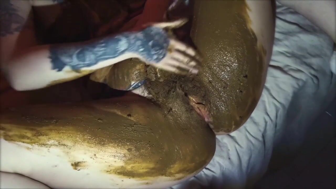Nasty shit covered babe taking fat cock in pussy