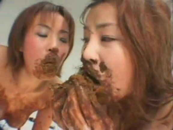 Nasty Asian girls kissing and shit licking