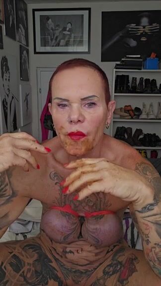 Tattooed slut smearing shit and eating shit