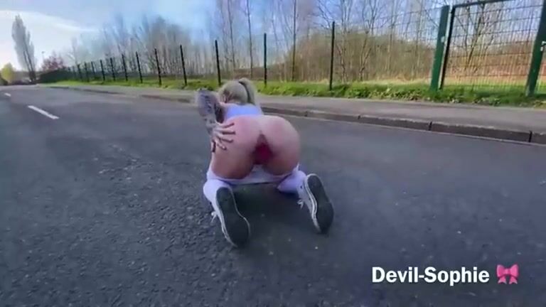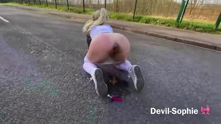 Gorgeous blonde MILF poops on the road