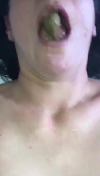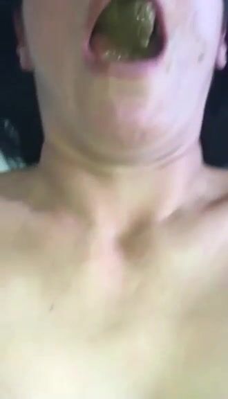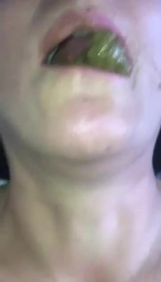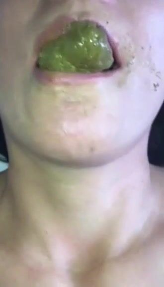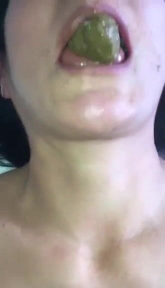 Mature slut eating green shit
