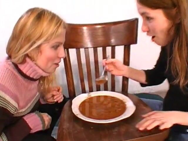 Girls play with scat on a plate
