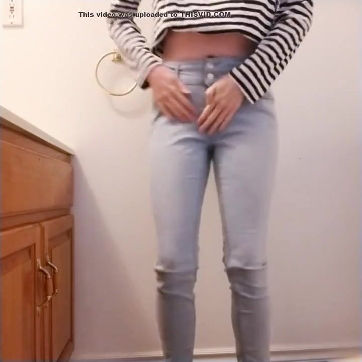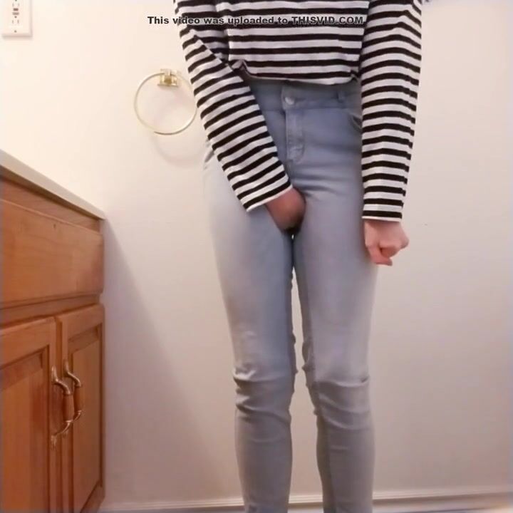 Desperate amateur teen girl floods her pants
