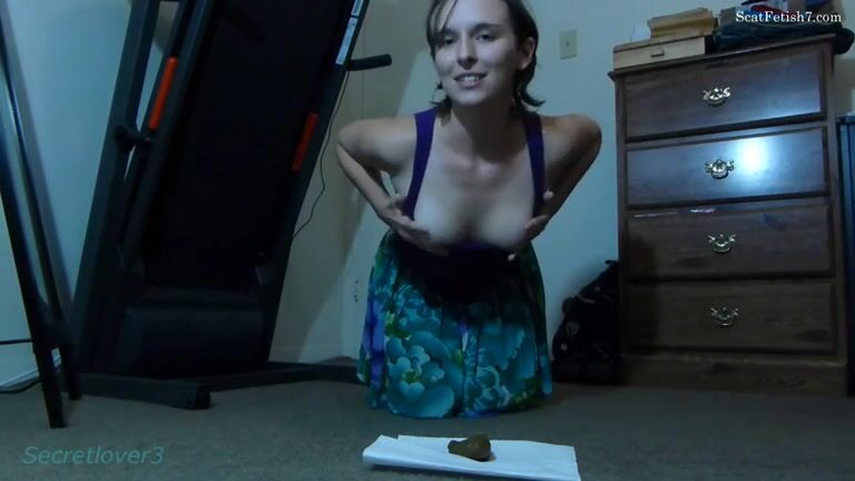 Sweet amateur brunette lady showing her hot pooping ass