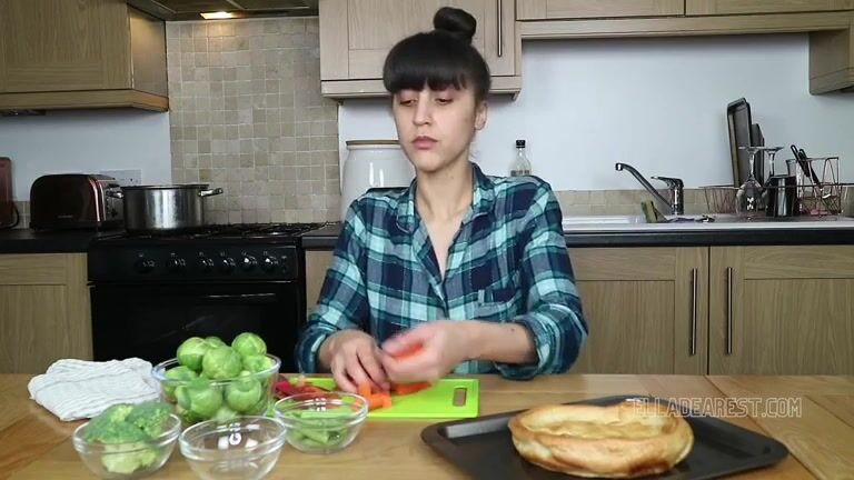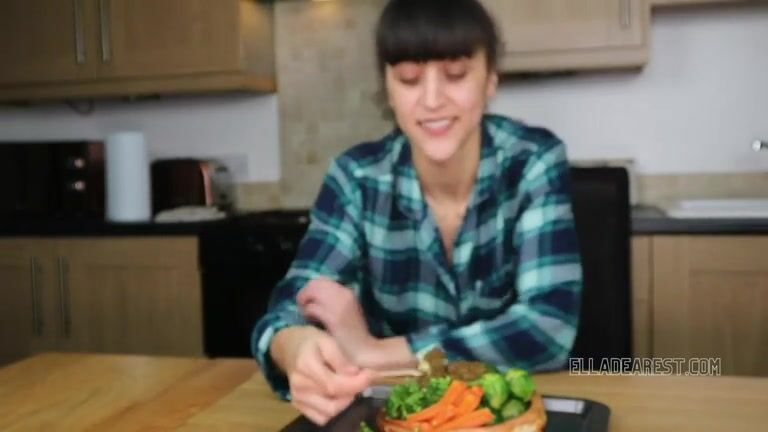Cute teen girl making shit salad