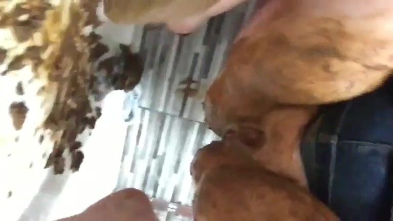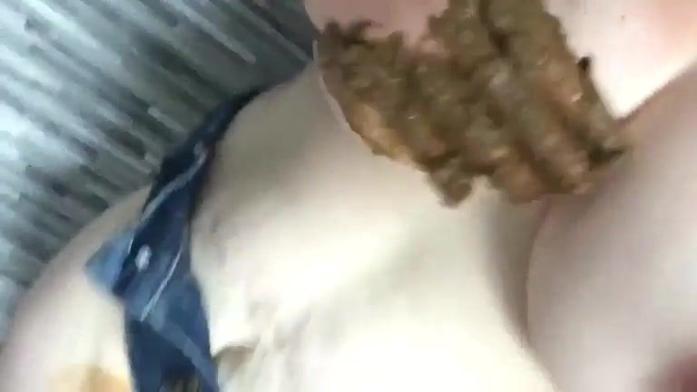 Slut fucking her shitty ass with huge dildo
