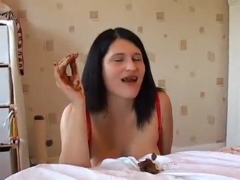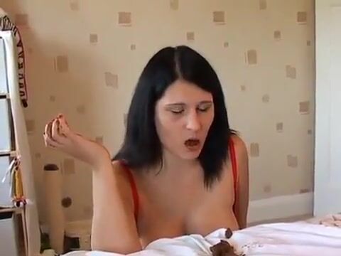 Hot real busty babe eating shit