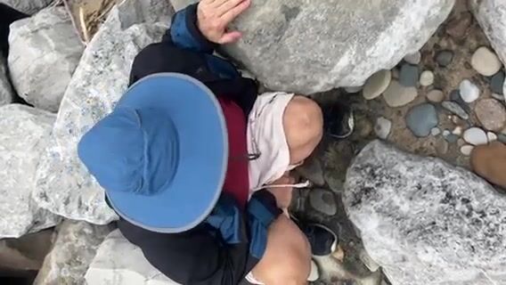 Mature lady with hat pissing on the hill