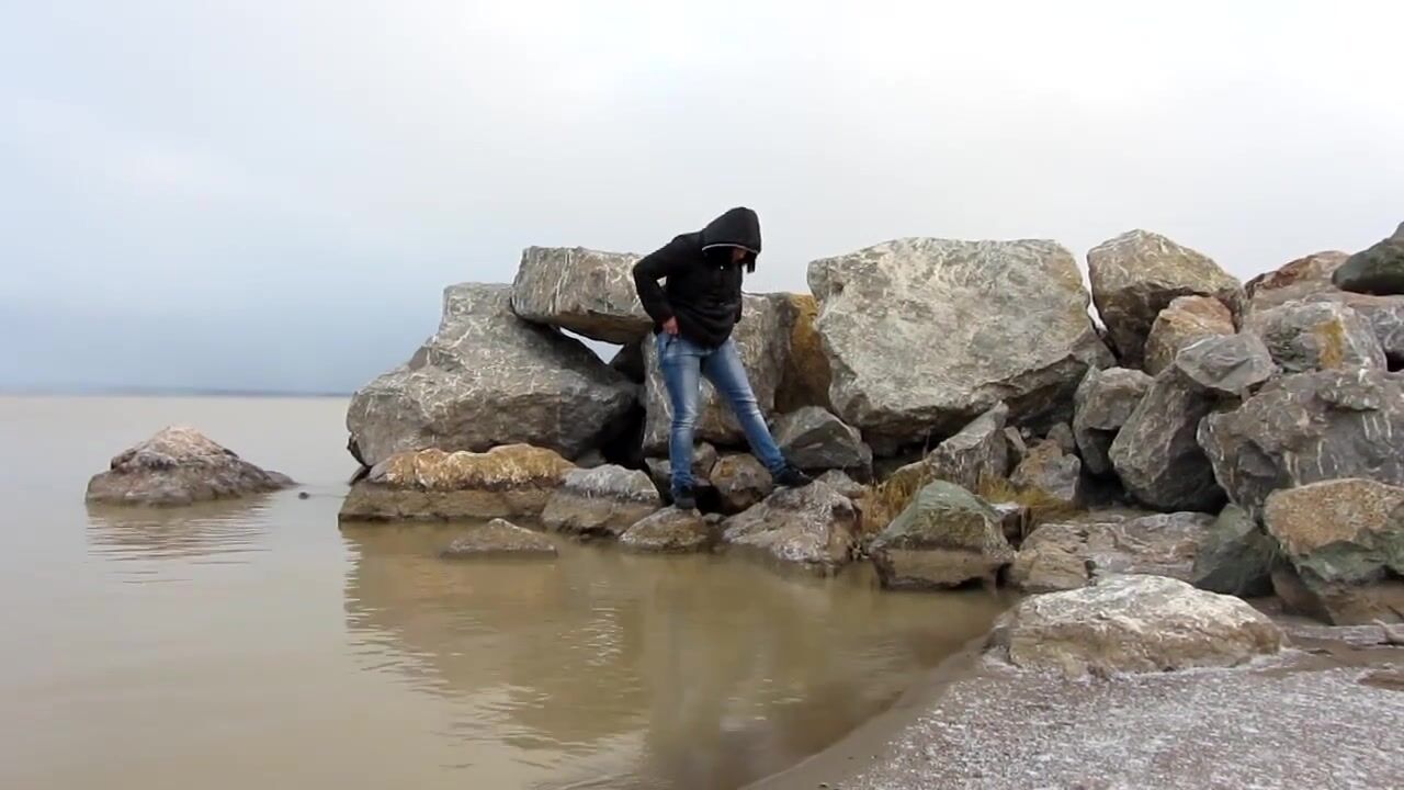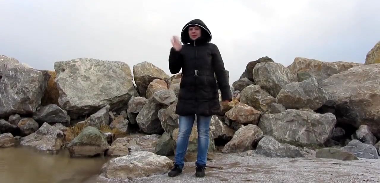 Natasha pee on the lake - Outside