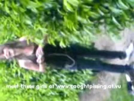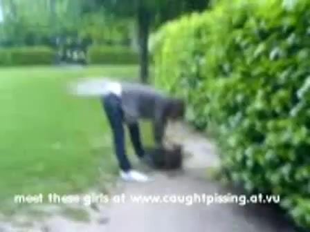 Amateur brunette babe caught pissing in the garden